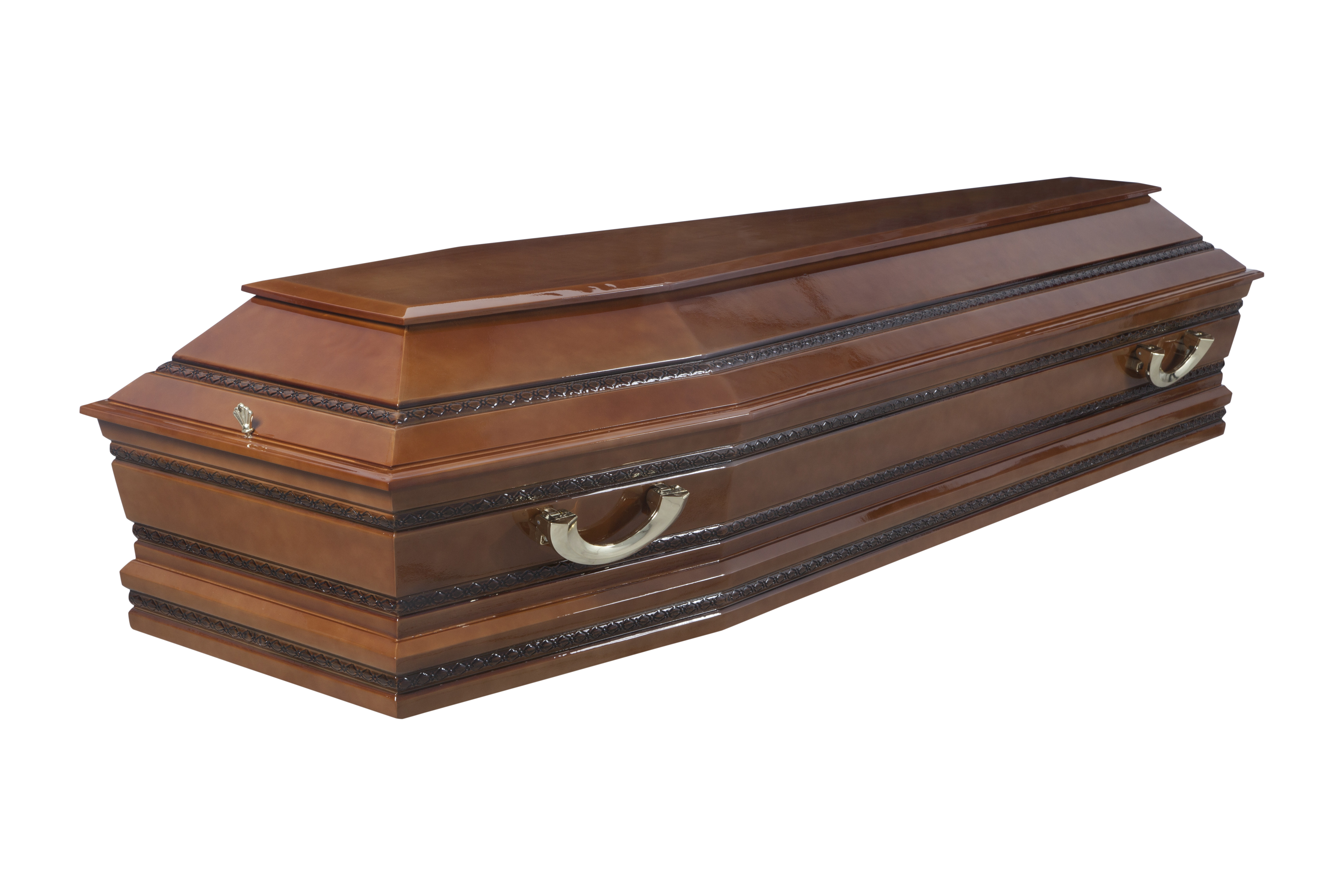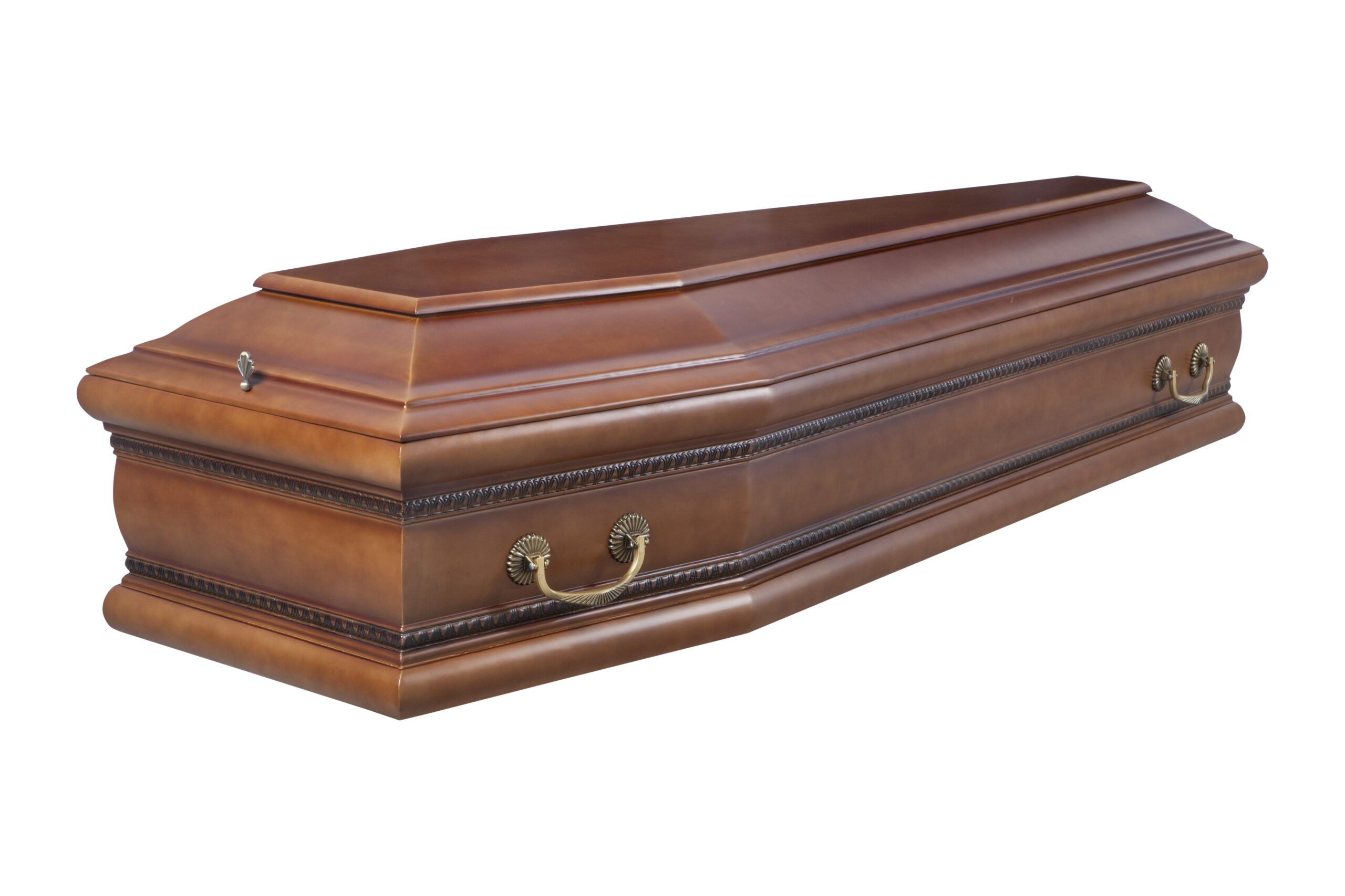 Шестигранный гроб из ольхи, доступен в разных цветах и покрытиях.
