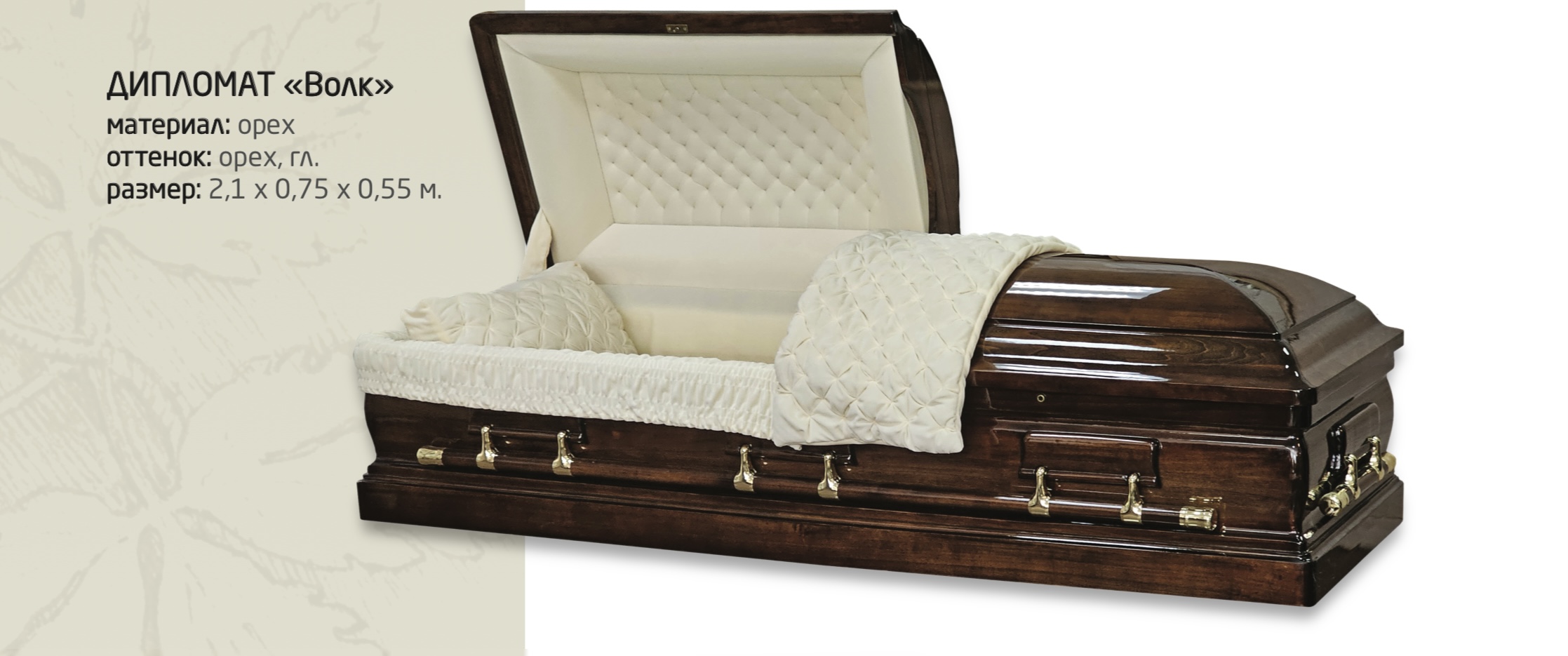 Гроб двухкрышечный, модель Ф5. Доступен в разных материалах и покрытиях.