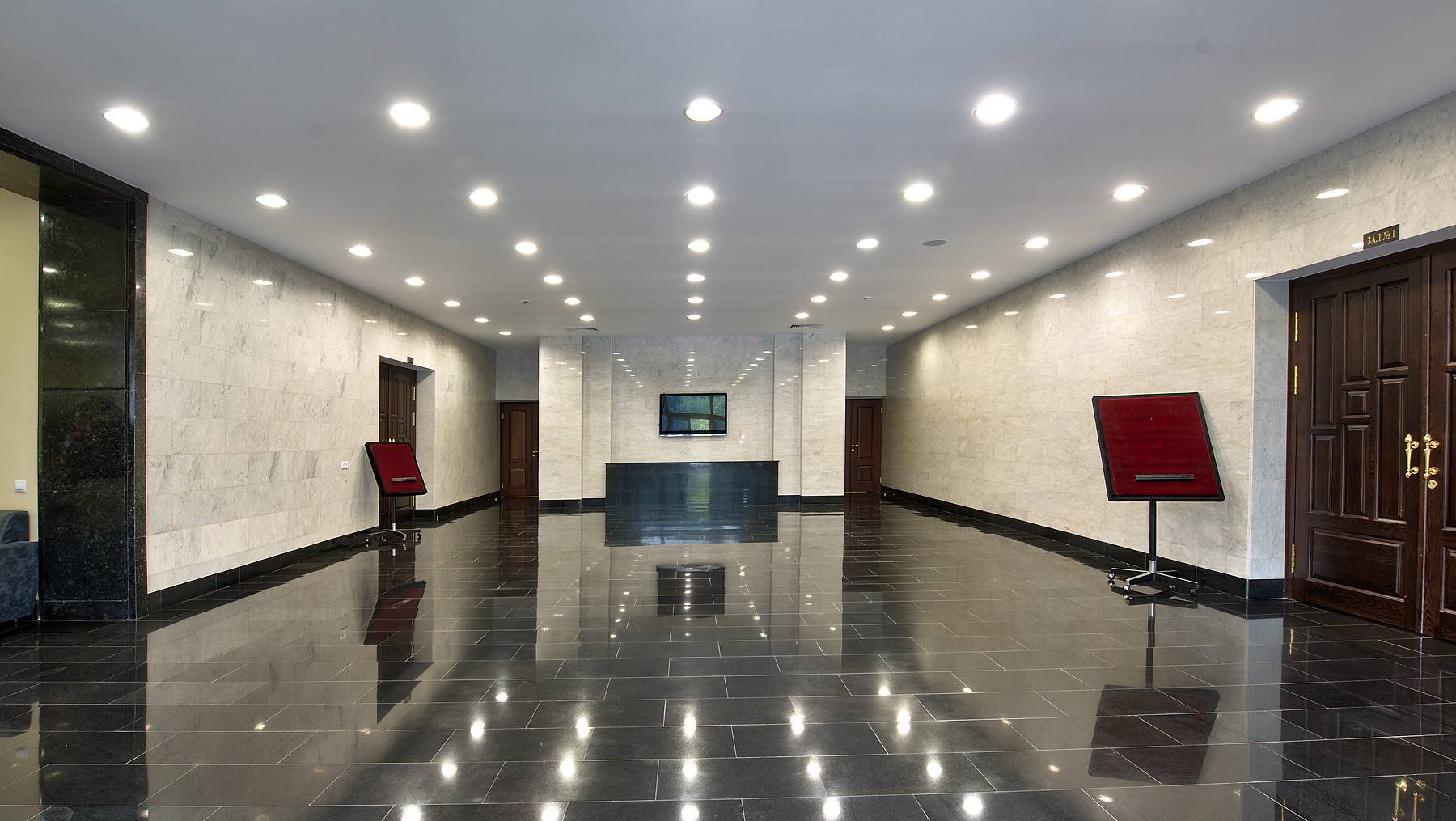 В центральной части фойе размещена телевизионная информационная панель, на которой отображаются: